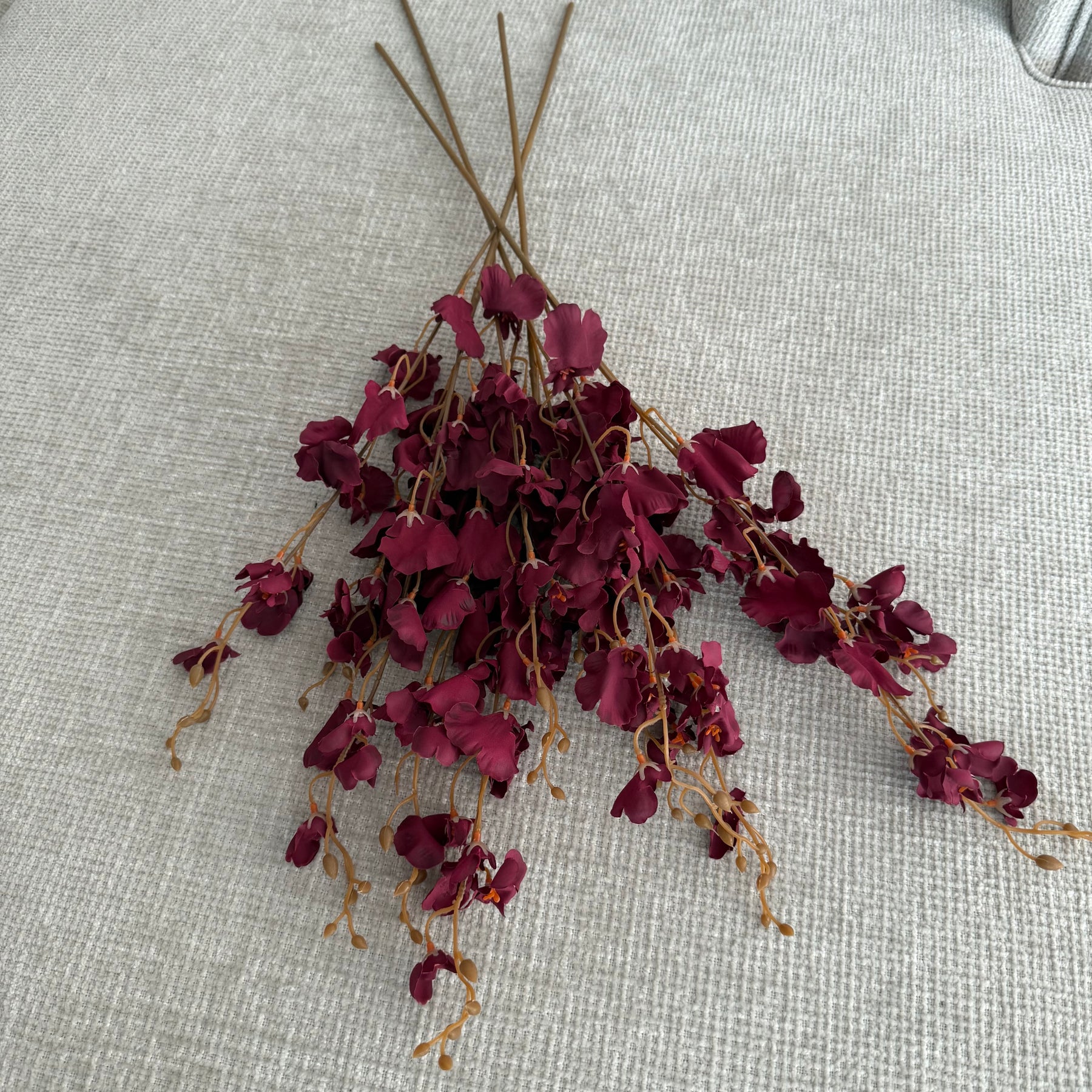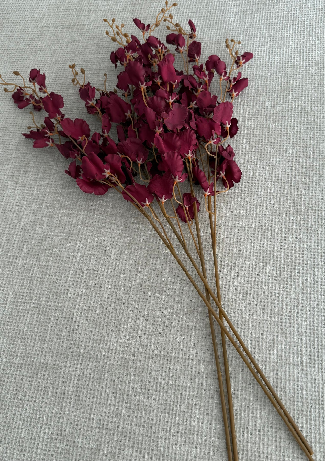 4 stem bunch burgundy faux dancing lady orchid artificial stems