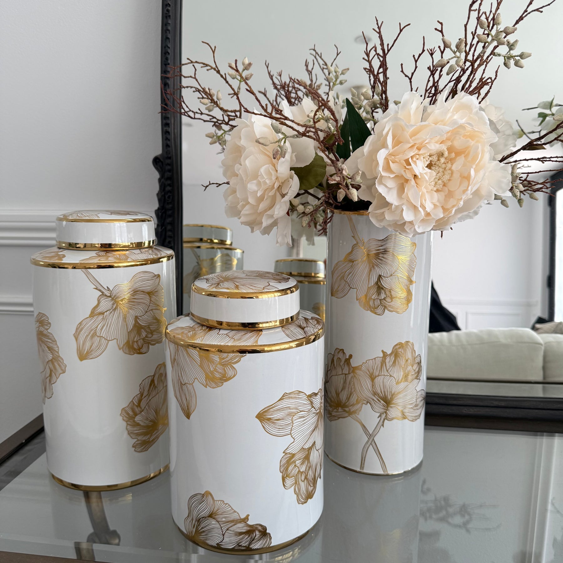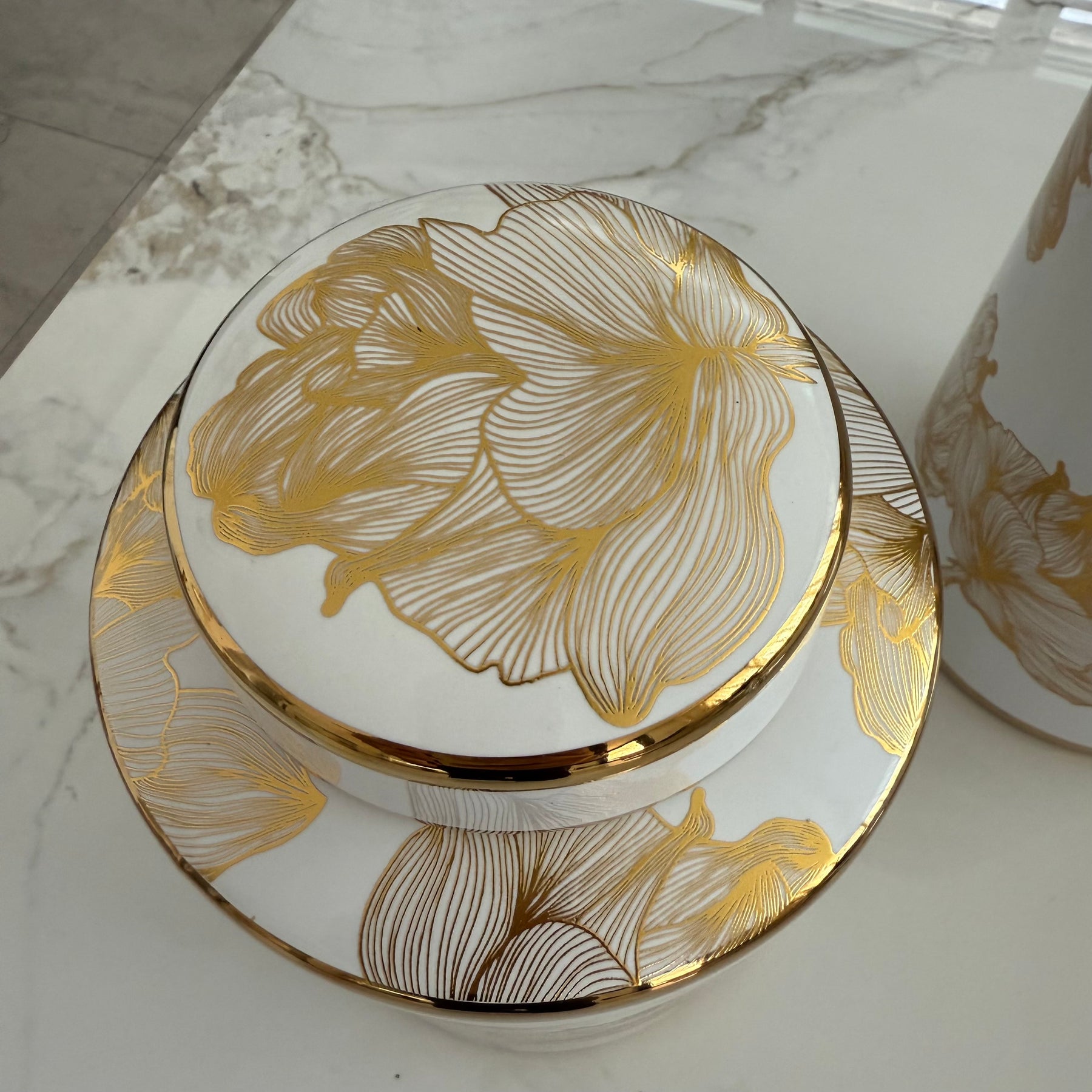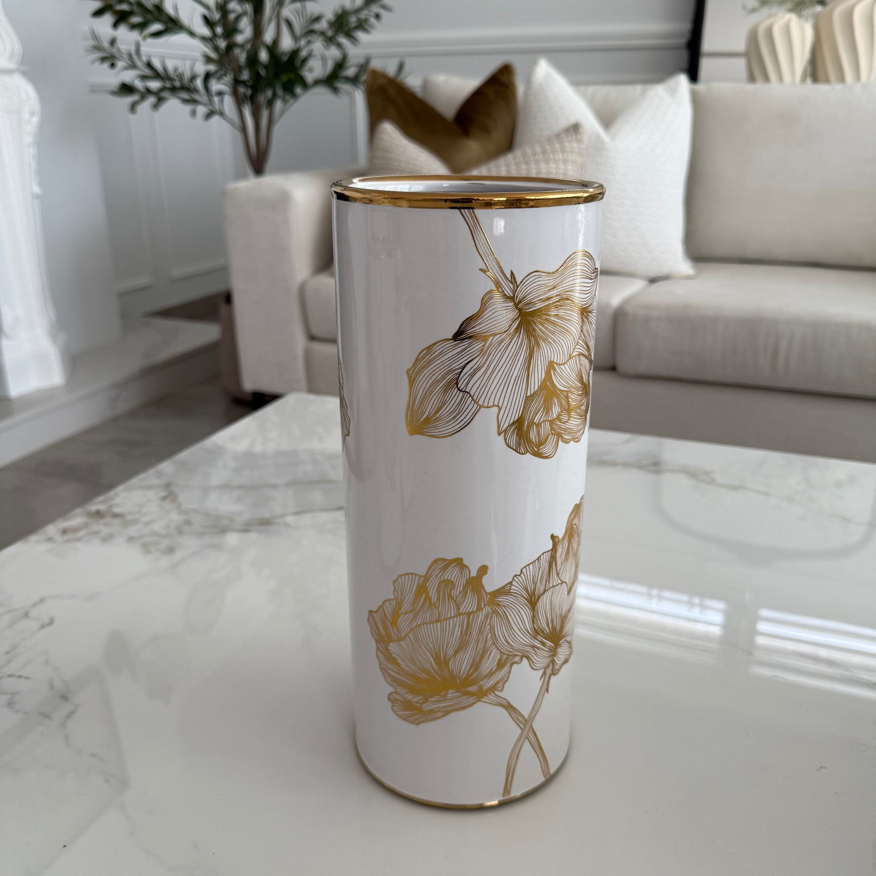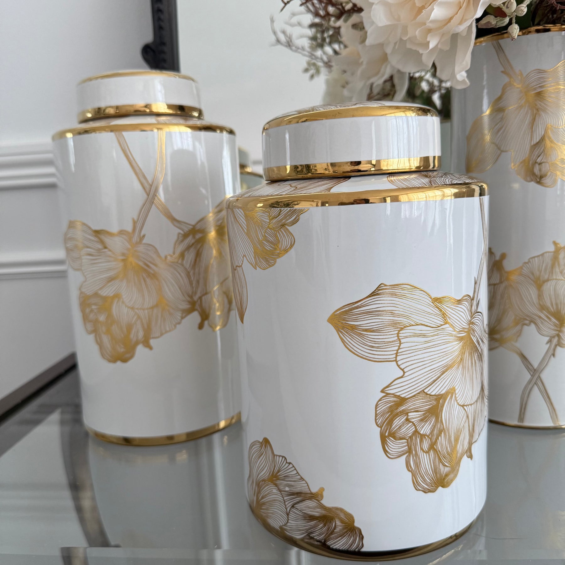 Floral white and gold accent Jar / vase