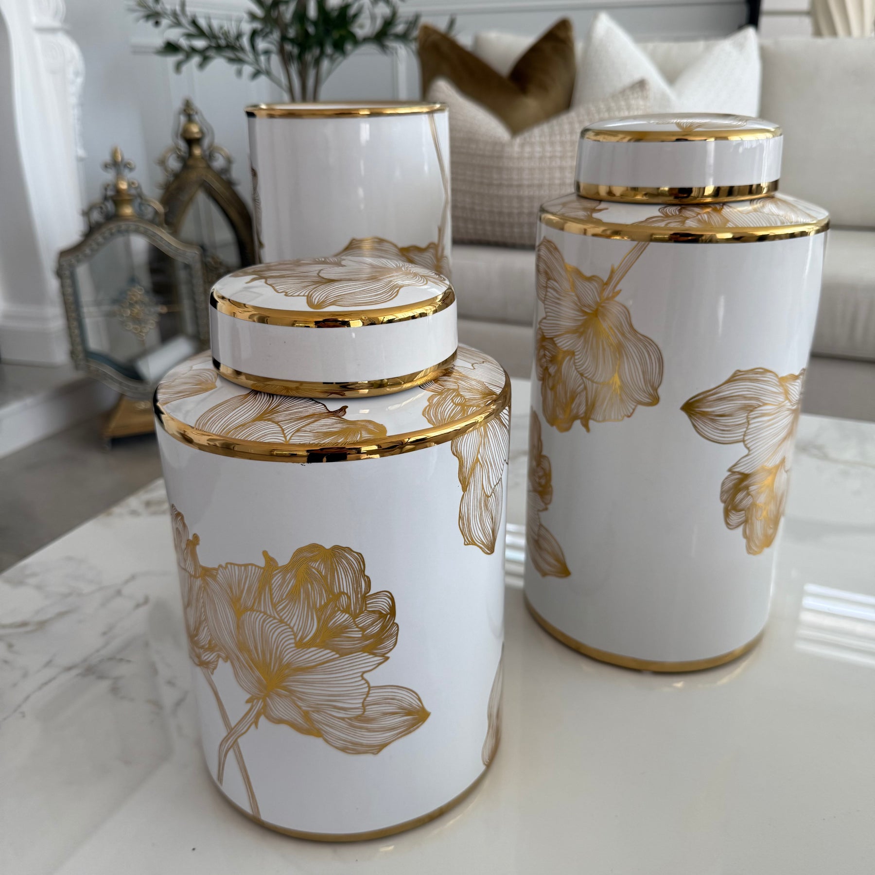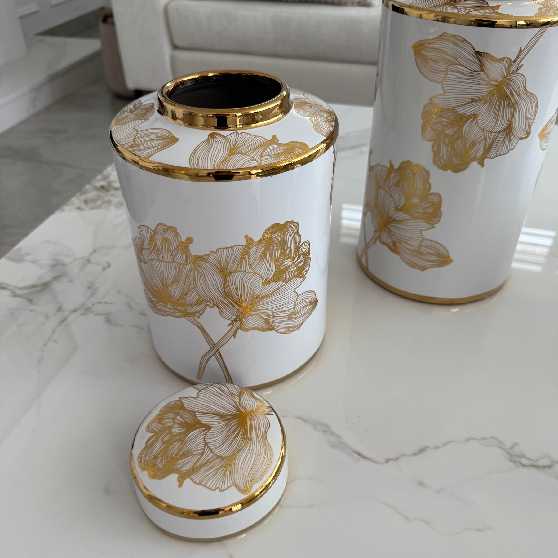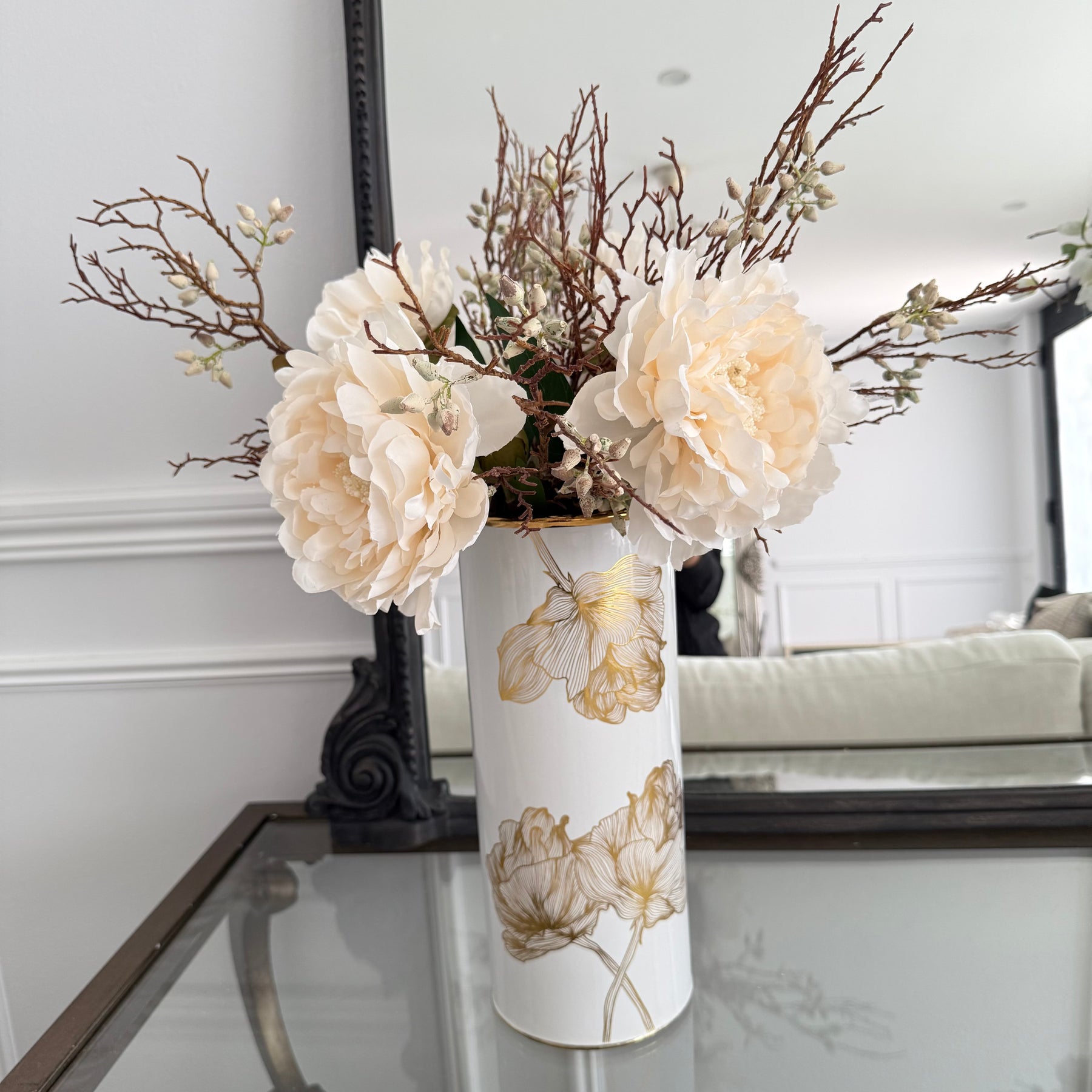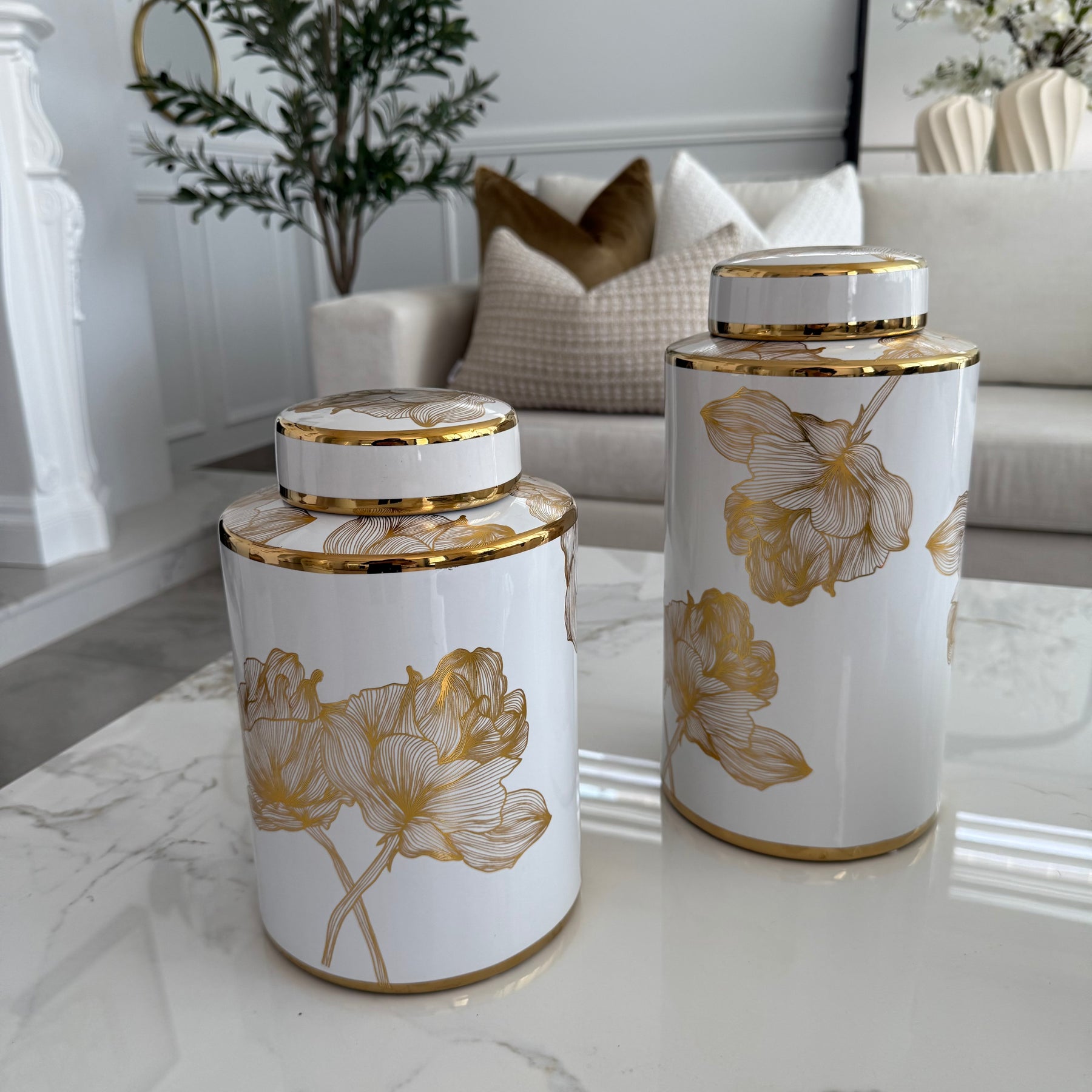 Floral white and gold accent Jar / vase