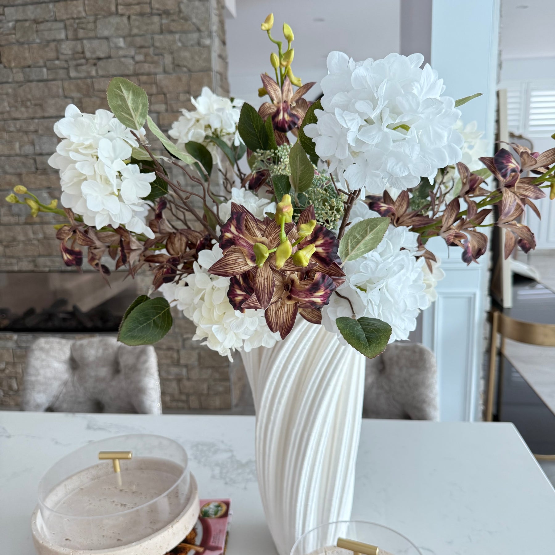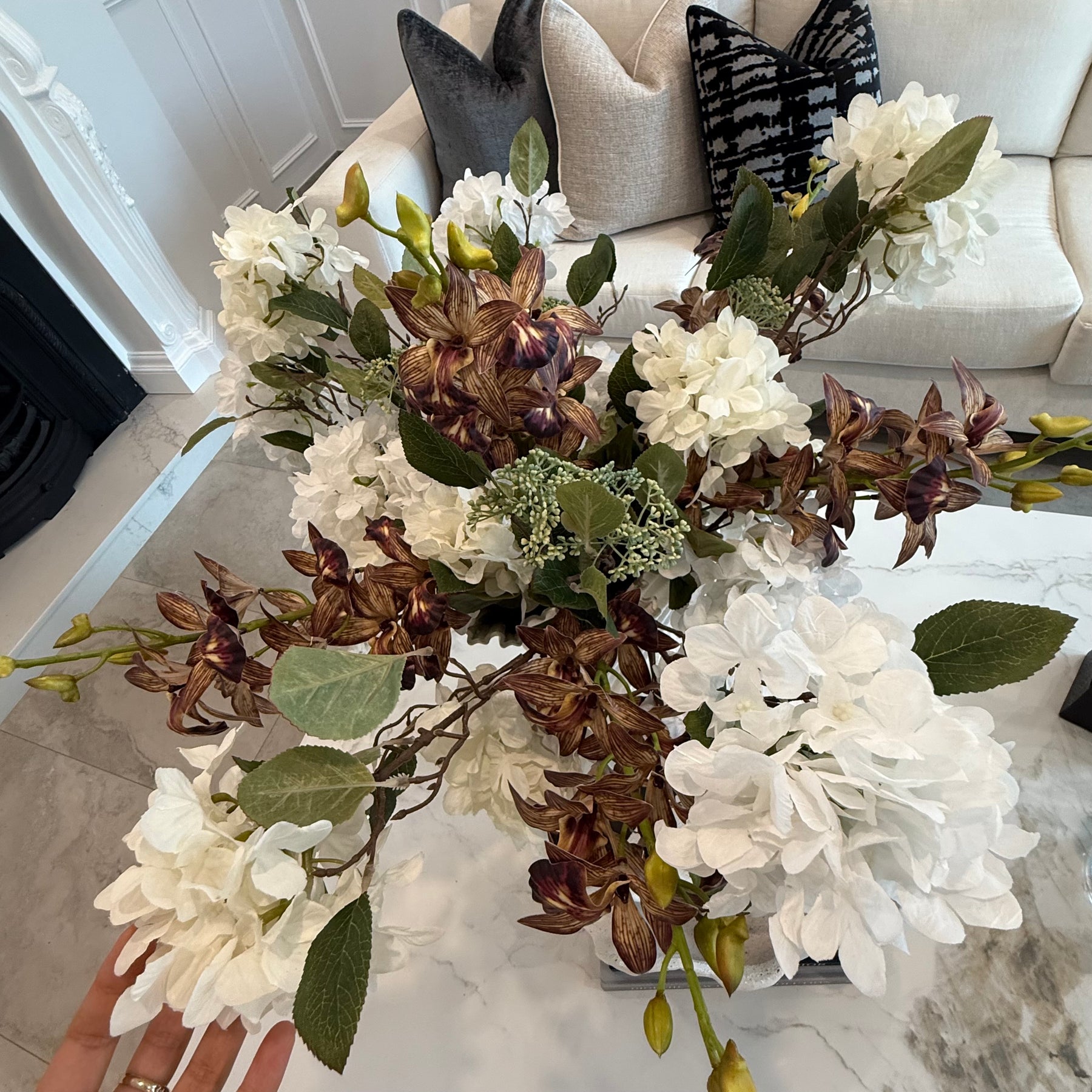 Cymbidium mocha orchid real touch stem 70cm - Luscious Homewares