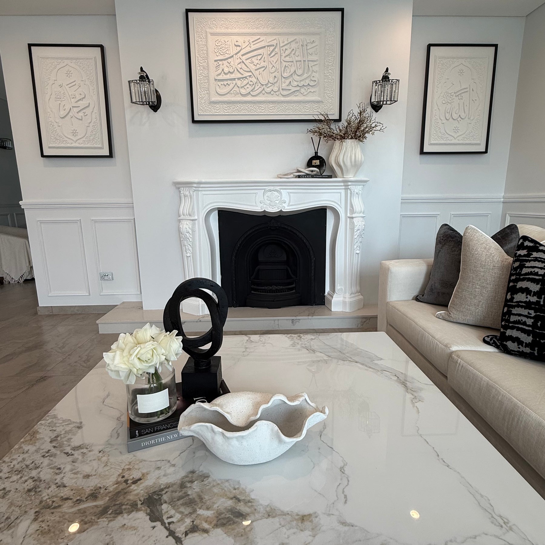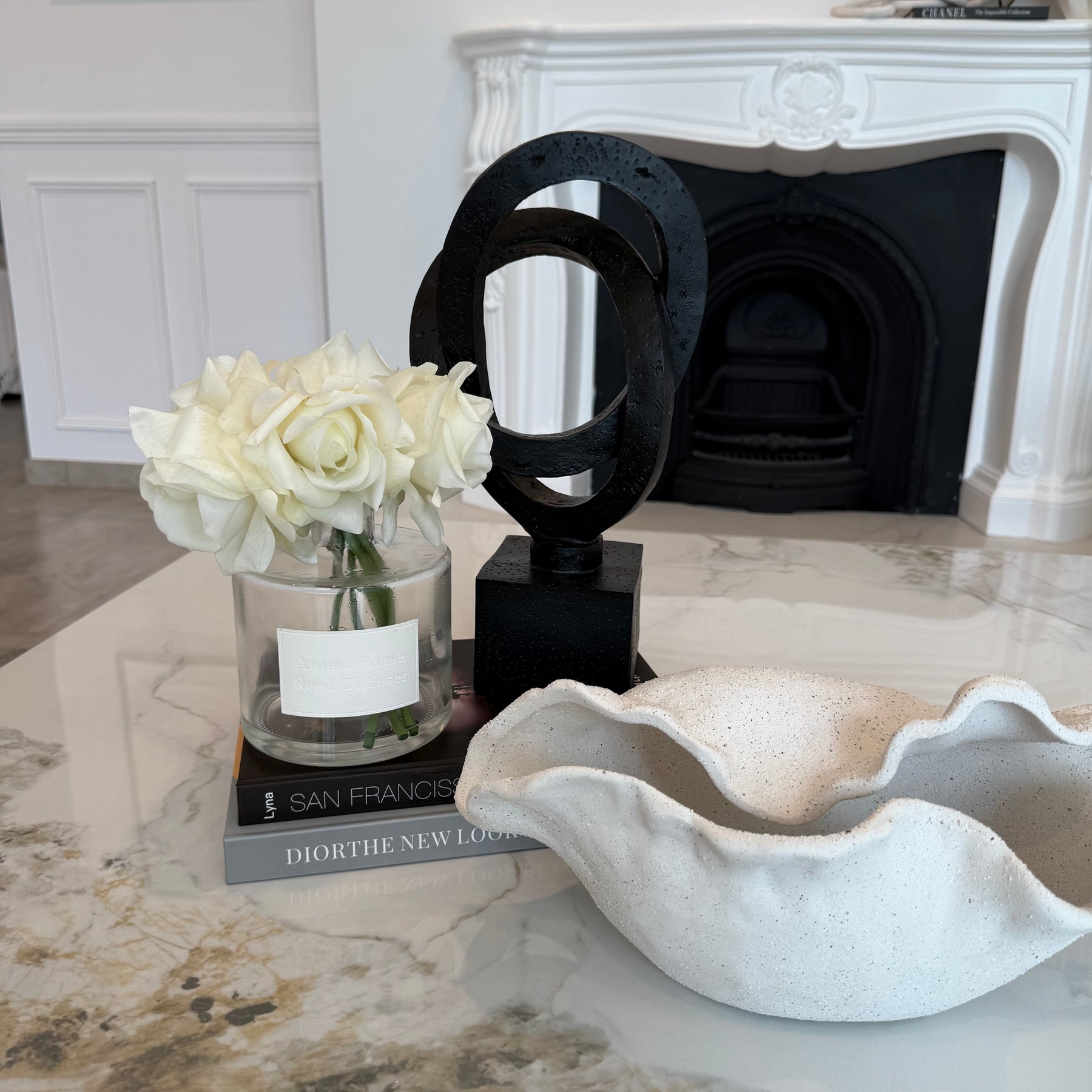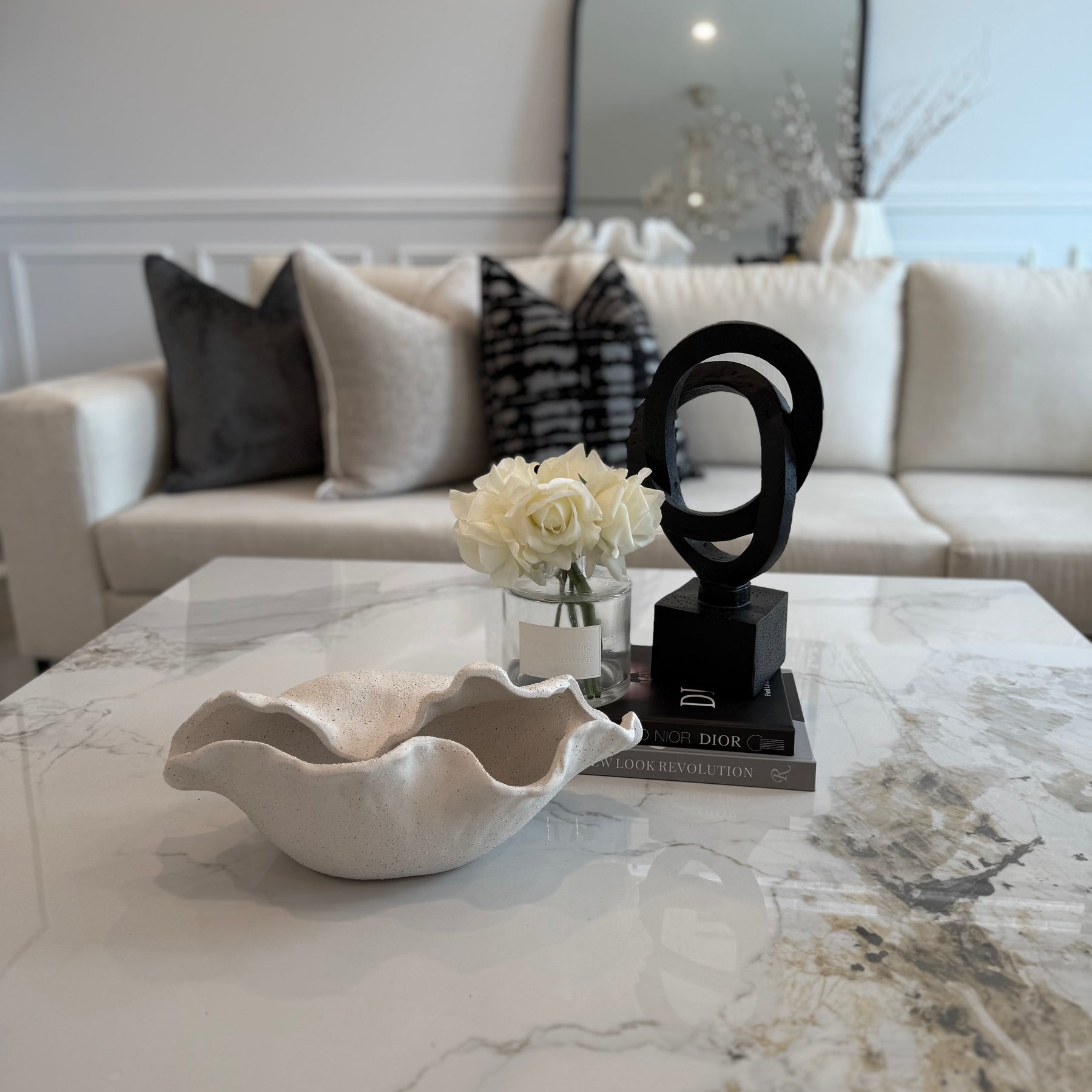 DECORATIVE STATUE: Indulge in the glamorous luxury of plush textures,  details, and sleek finishes to elevate your home and add a sophisticated flair .