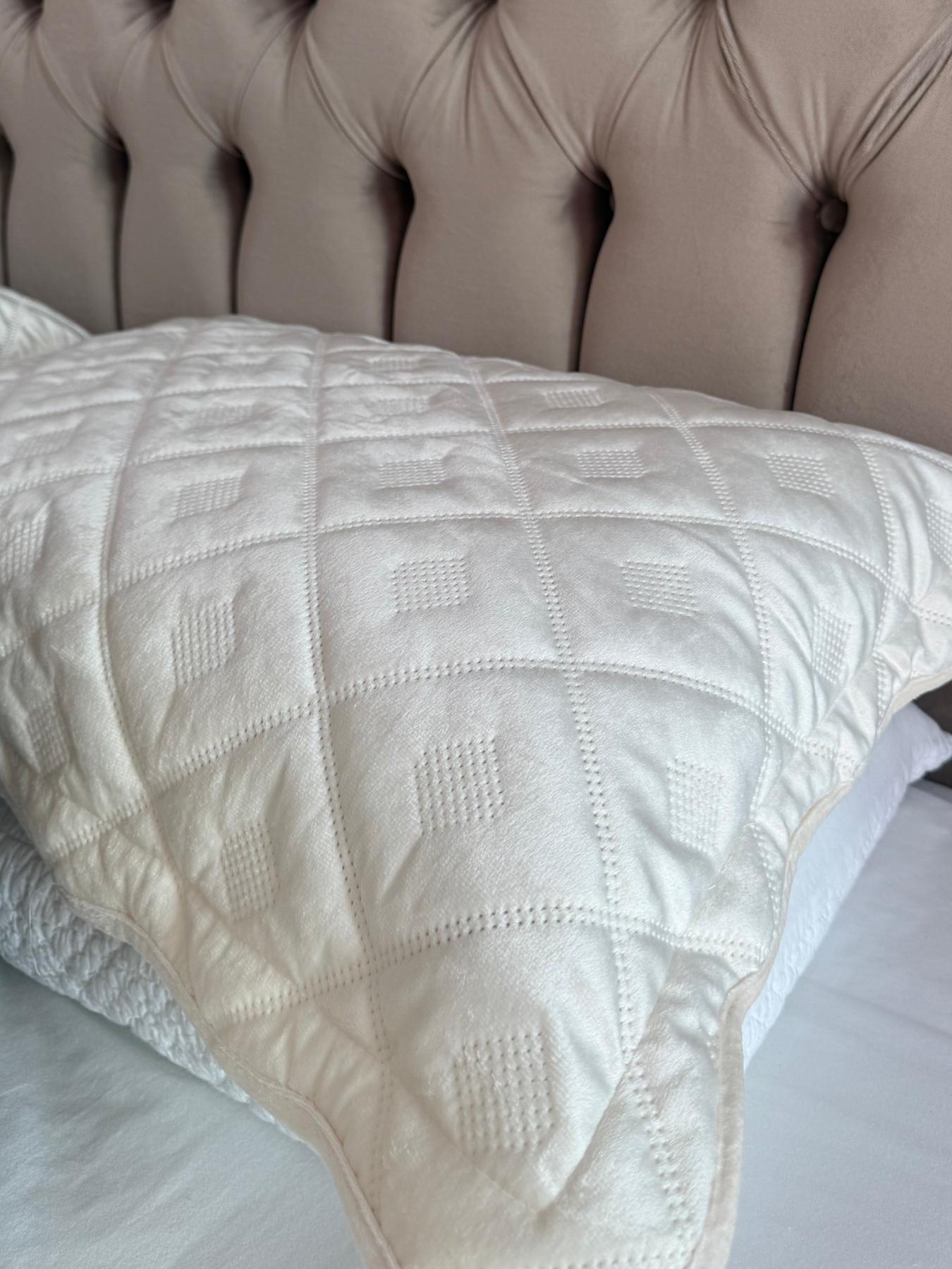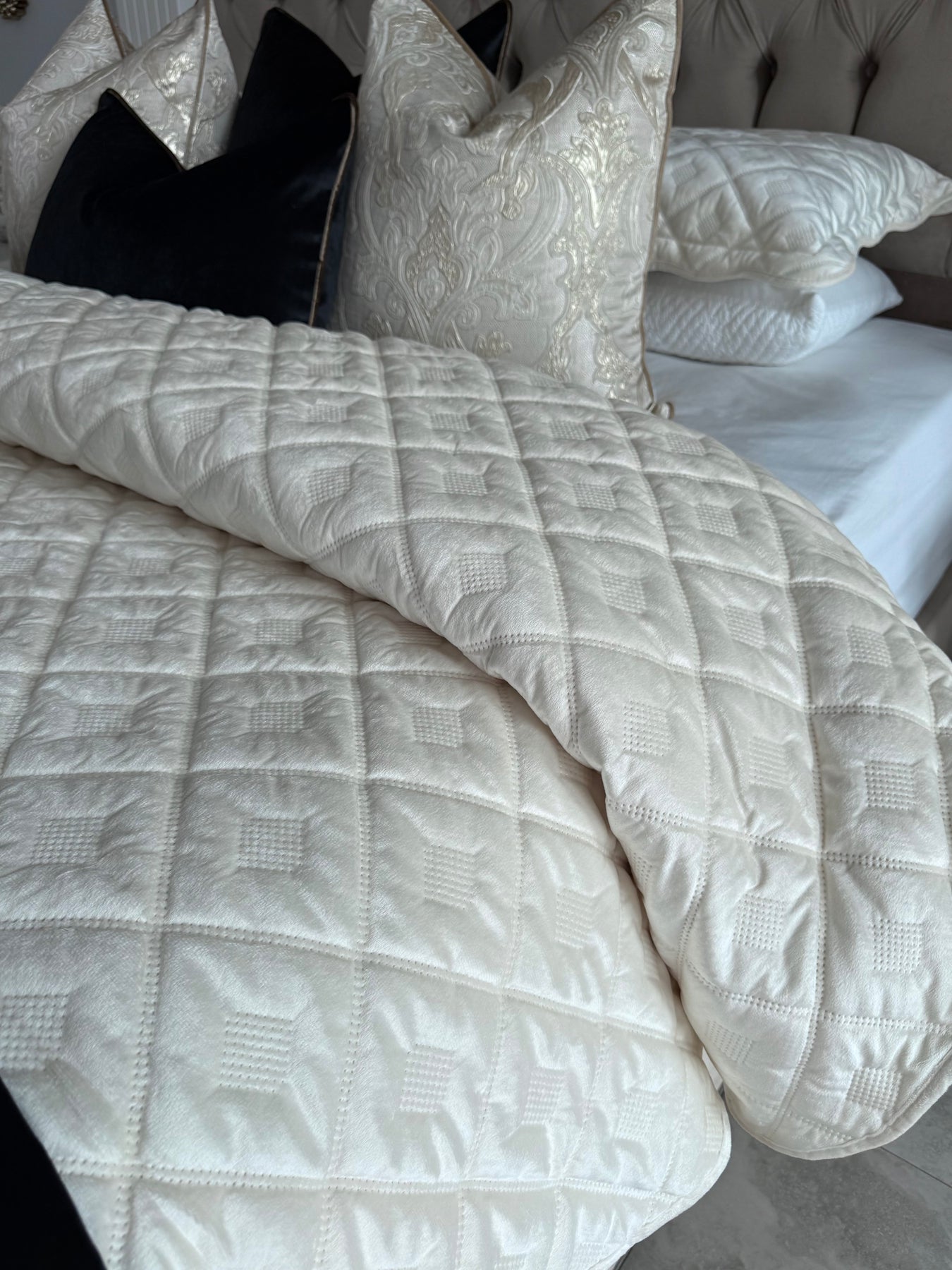 Luxe soft velvet ivory coverlet bedspread queen / king set 3 pieces