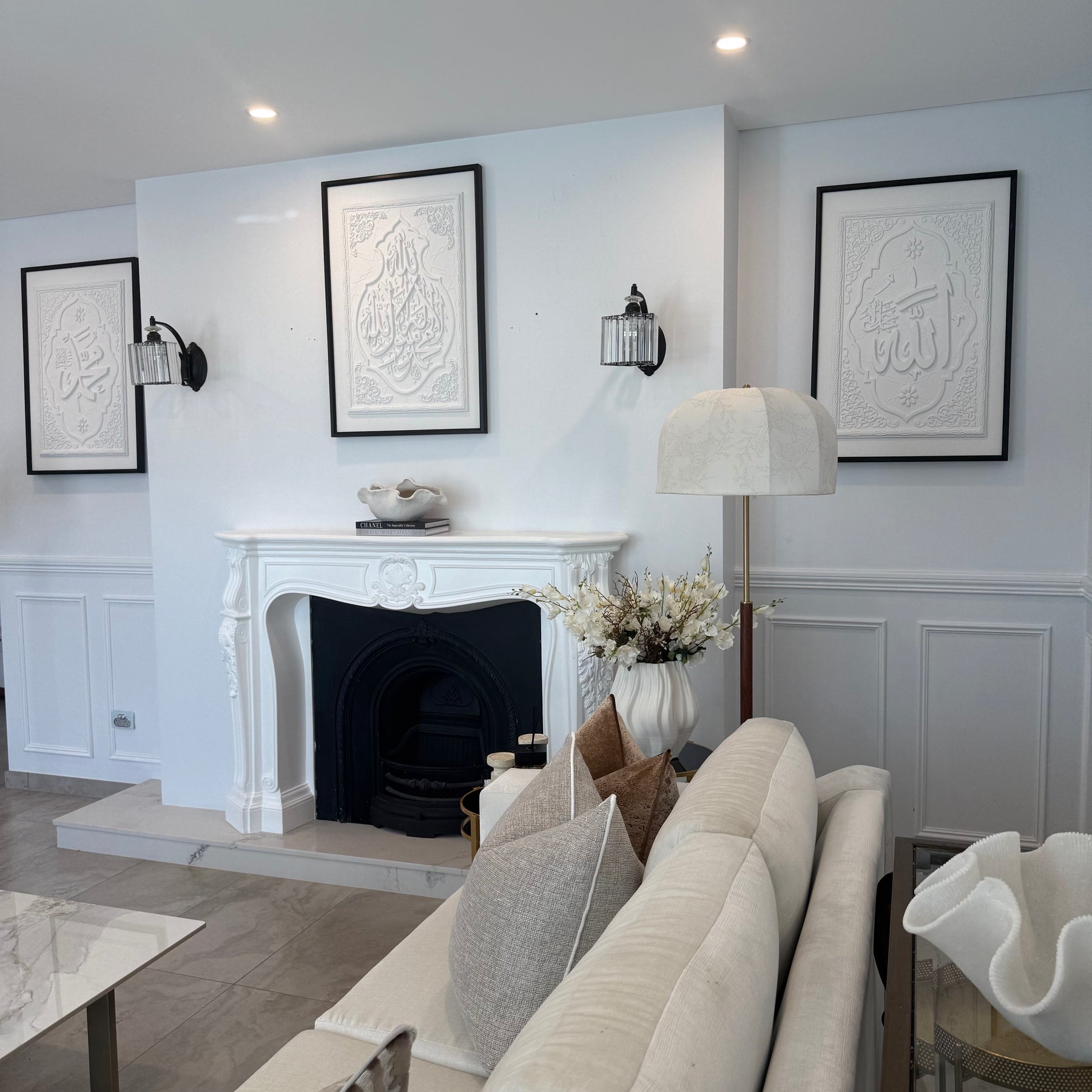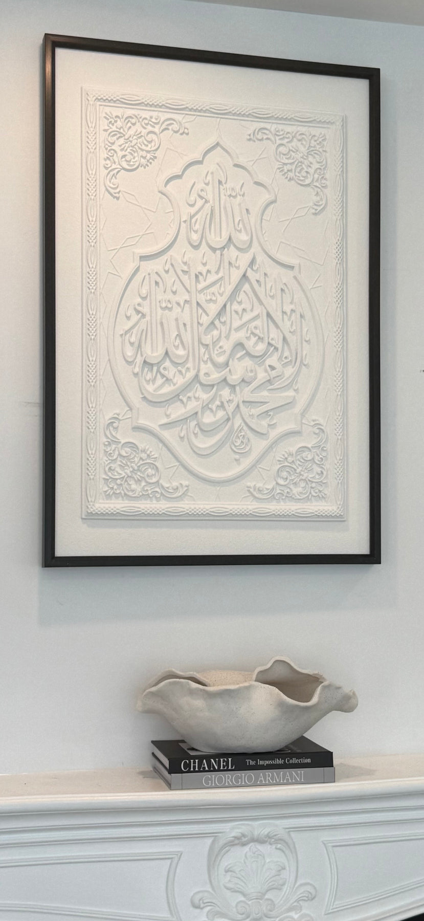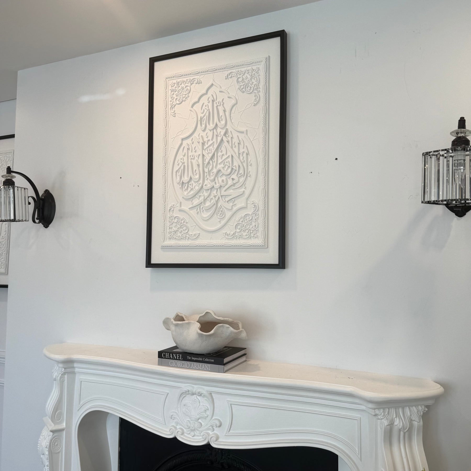 Stone effect black frame La ilaha illallah Muhammad ur Rasool Allah (SAW) I bear witness that there is none worthy of worship except Allah.