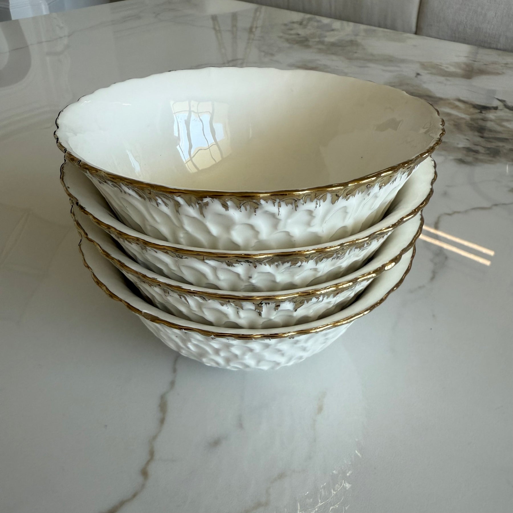 Intricate white and gold round bowls 2 piece set .