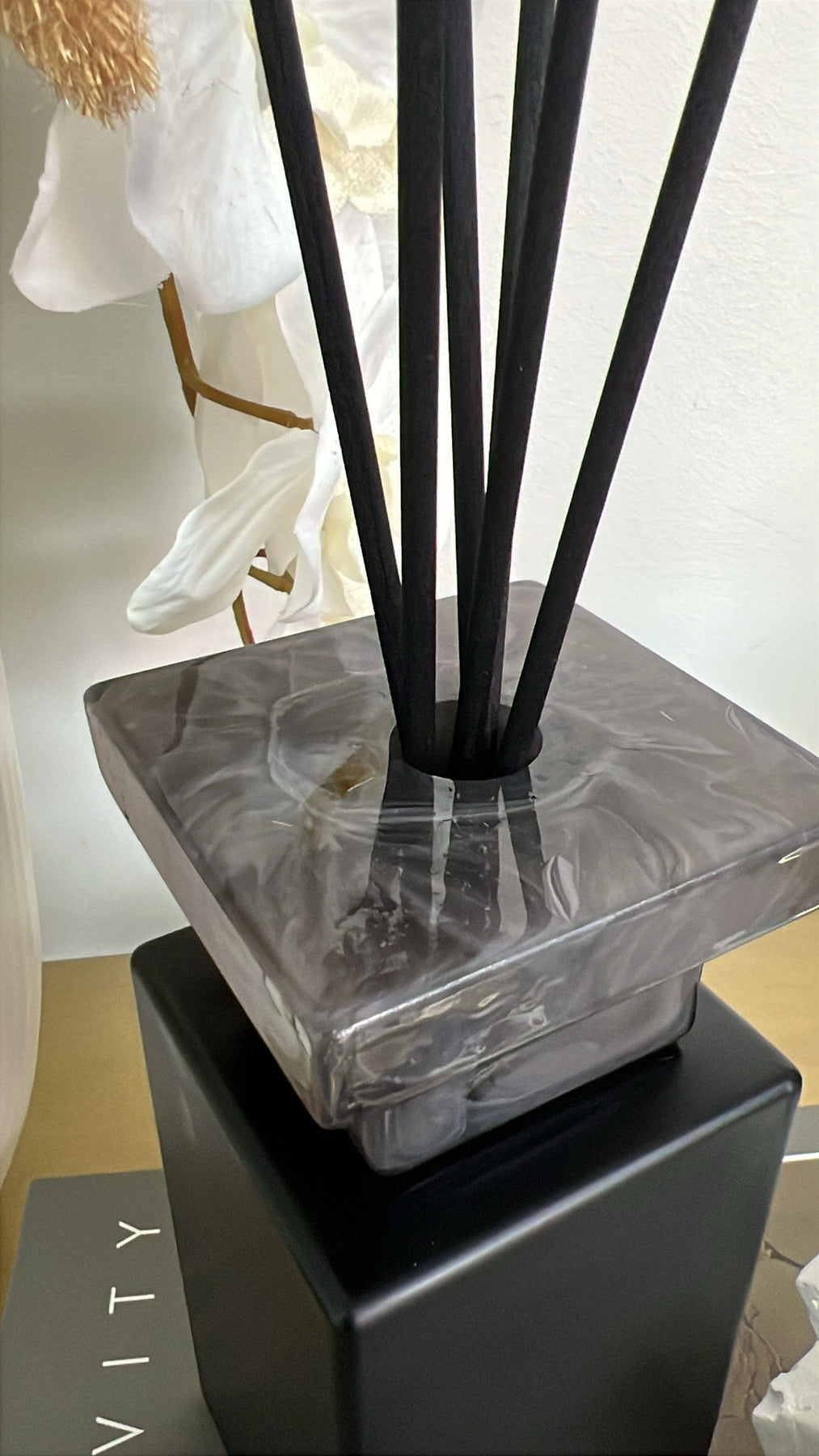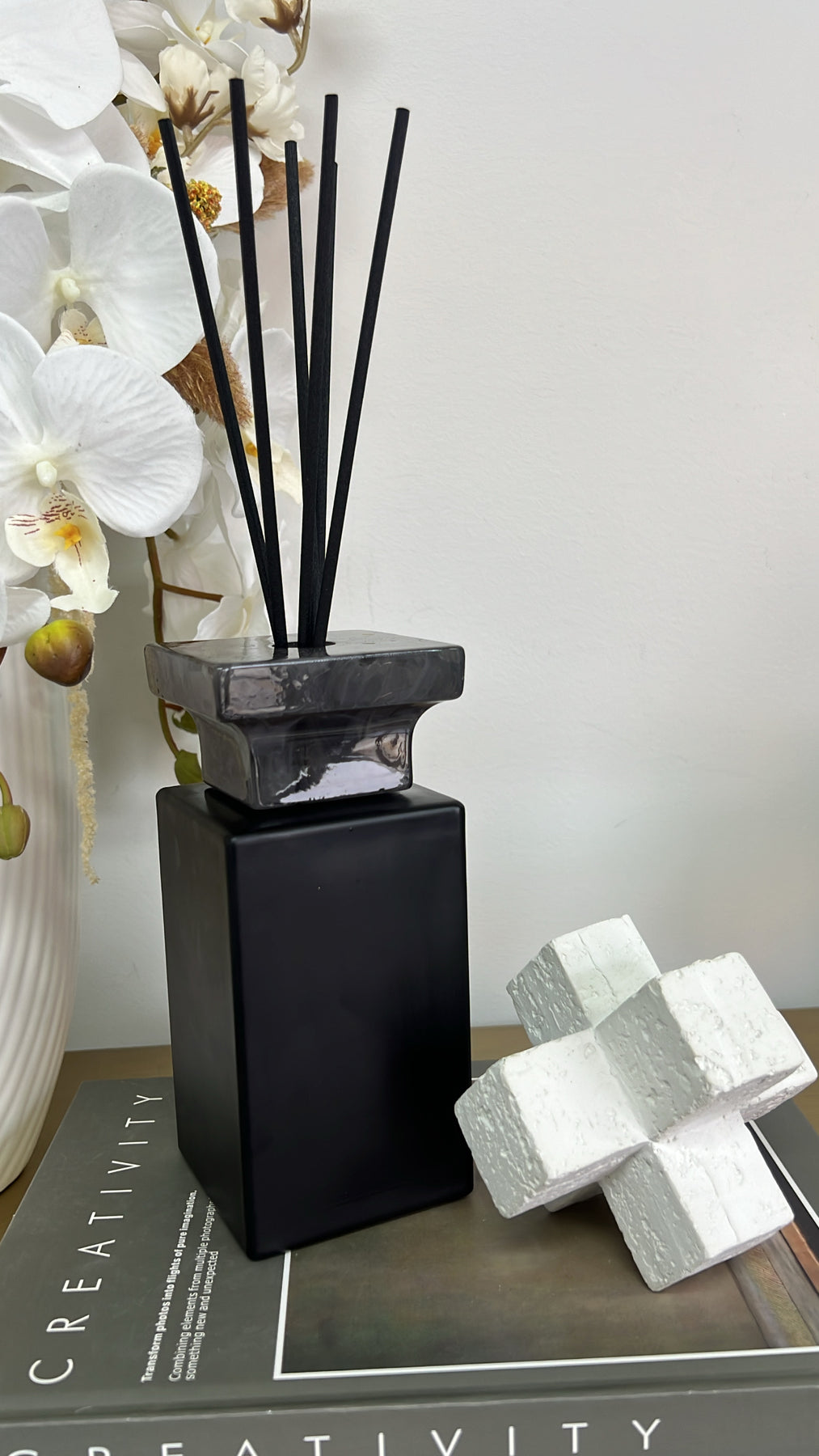 Luxury Matt black grey Marble diffuser red teak scent 500ml
