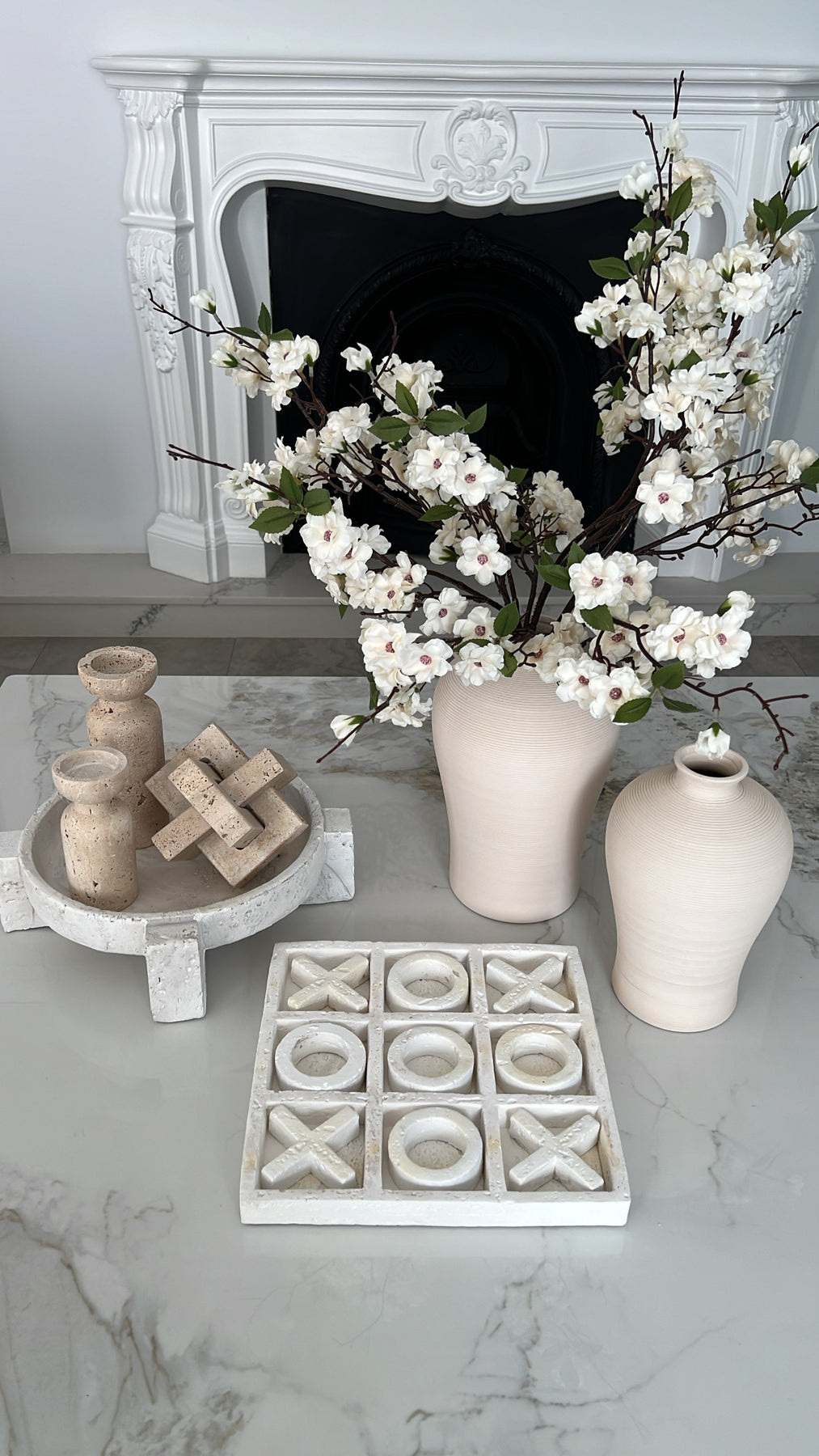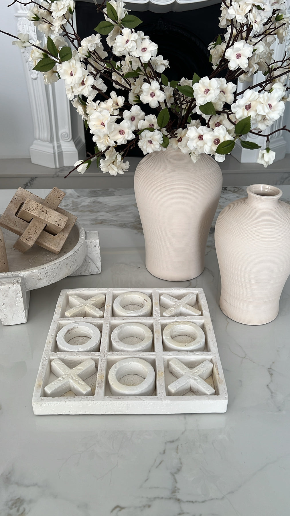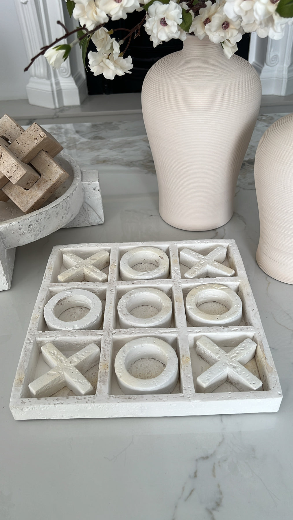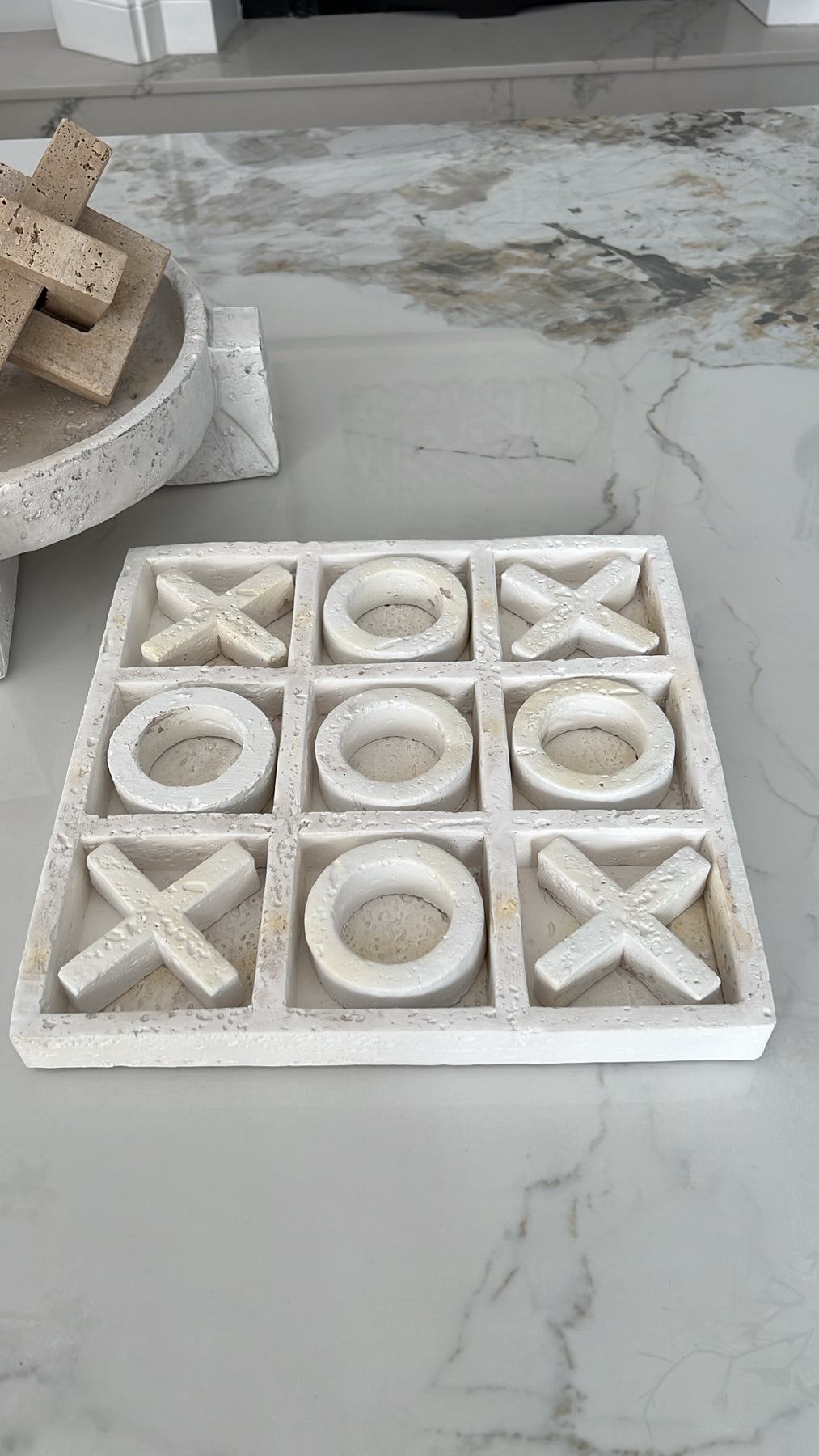 Naughts & crosses white stone decor