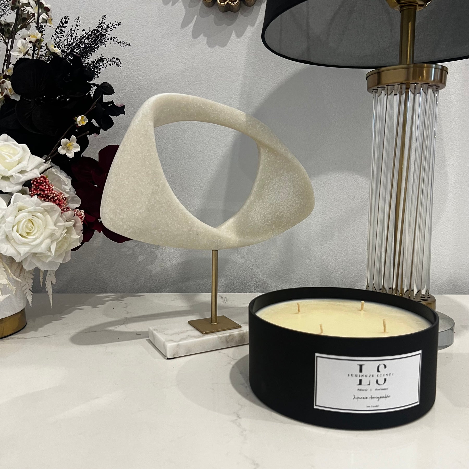 The Quartz sculpture stand is a beautiful accent piece made from ground quartz powder mixed with resin to form a marble-like decorative shape. The quartz resin allows for complex shapes with a better value than real carved marble.