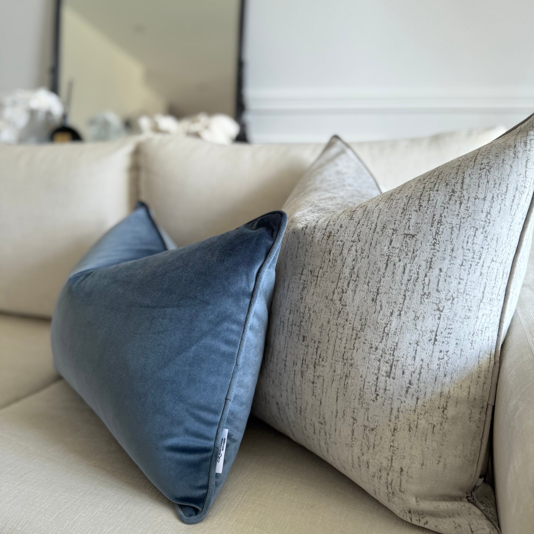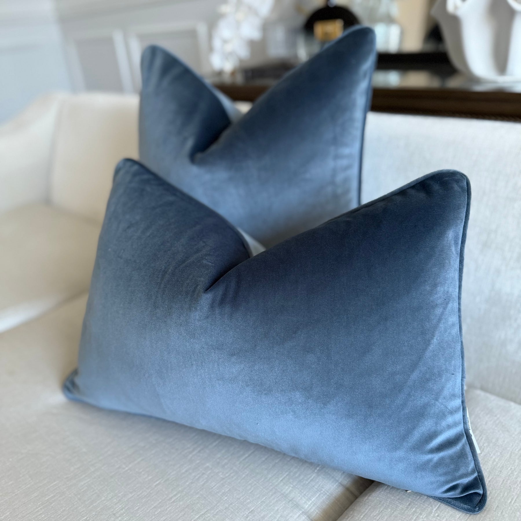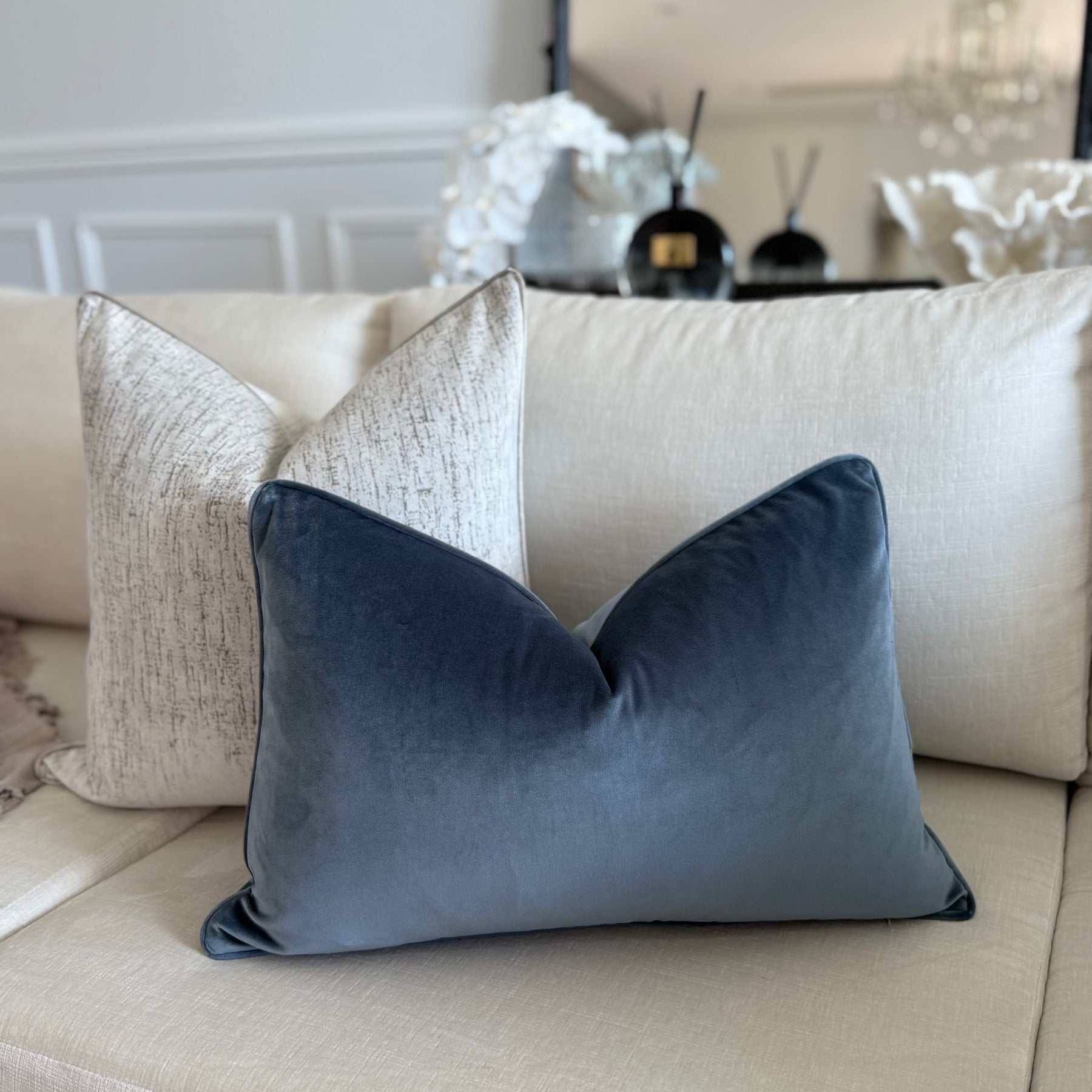 Stone blue cotton velvet cushion
