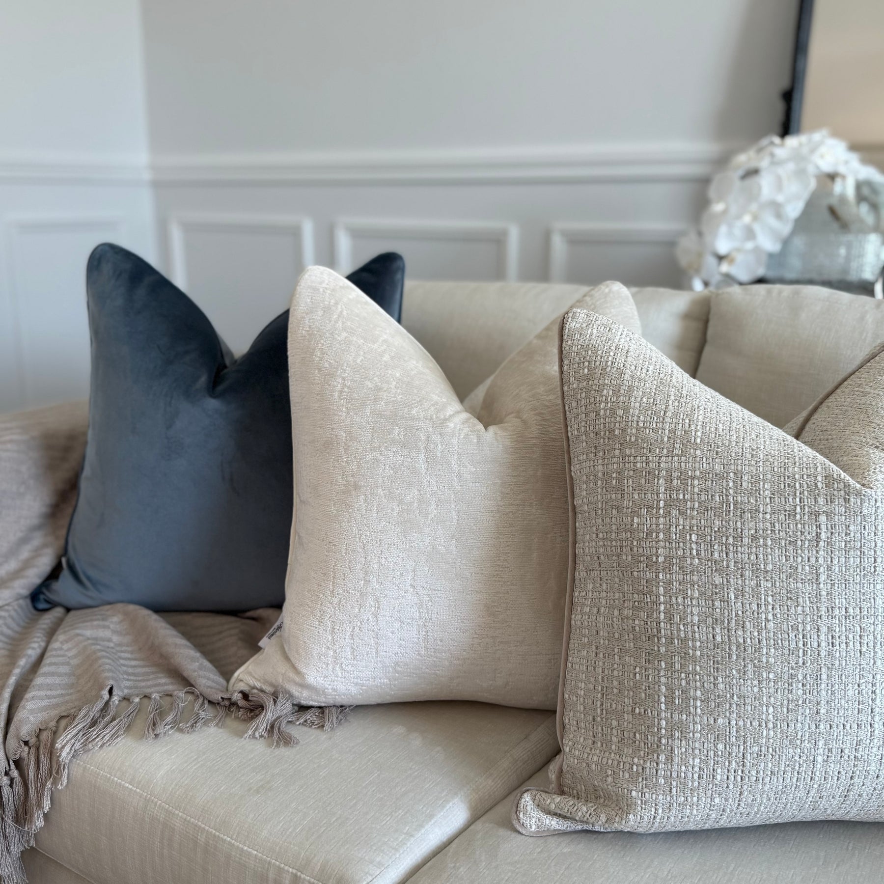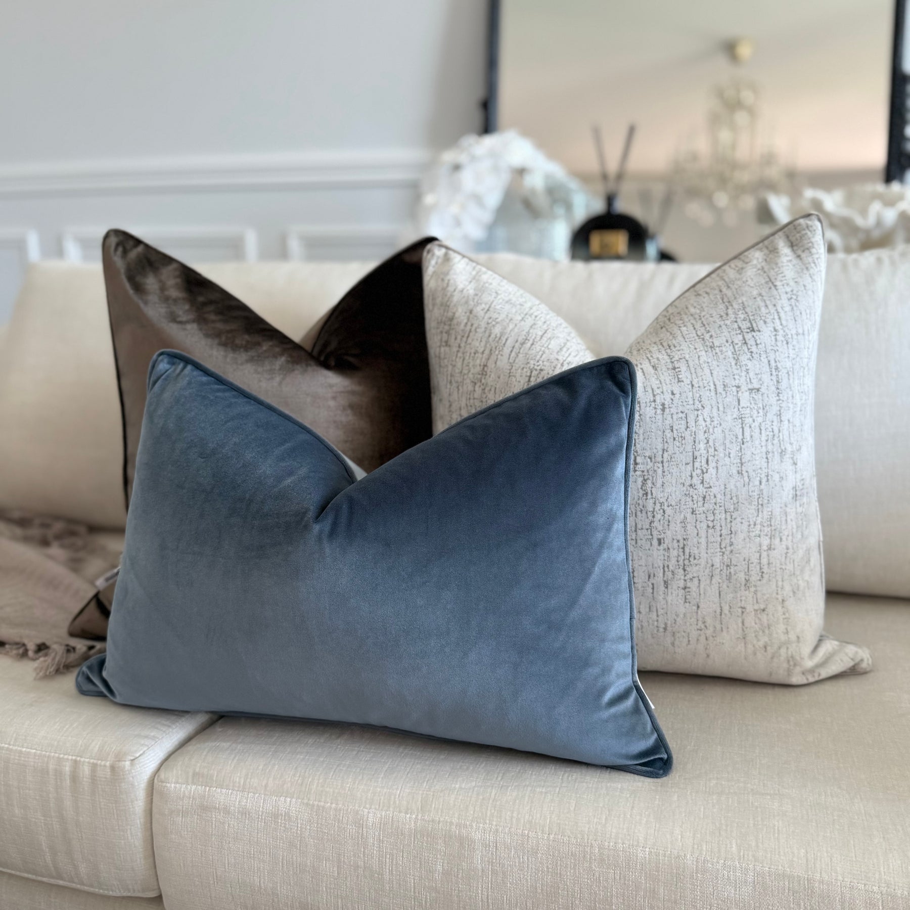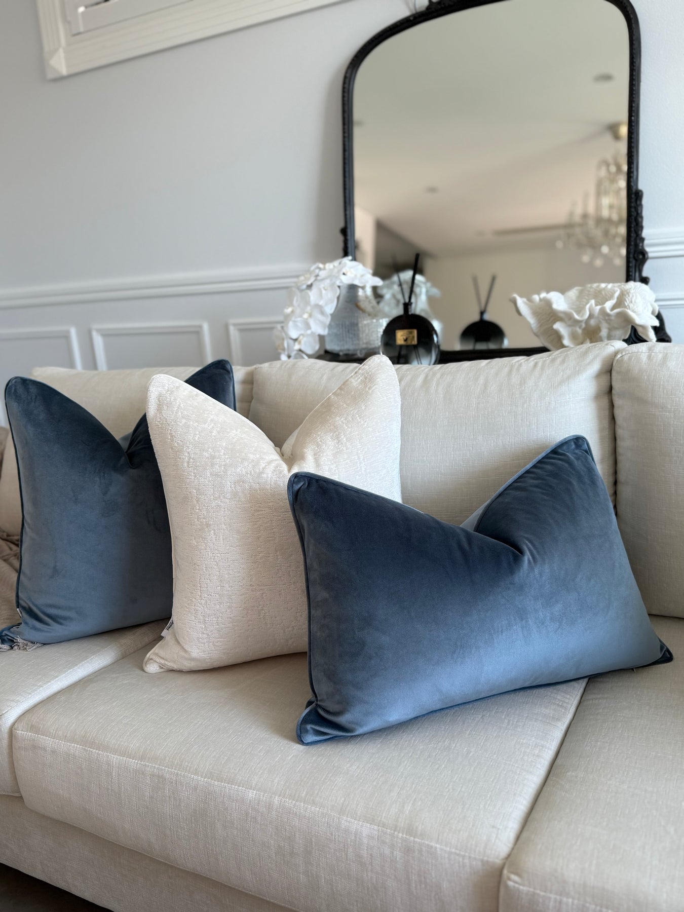 Stone blue cotton velvet cushion