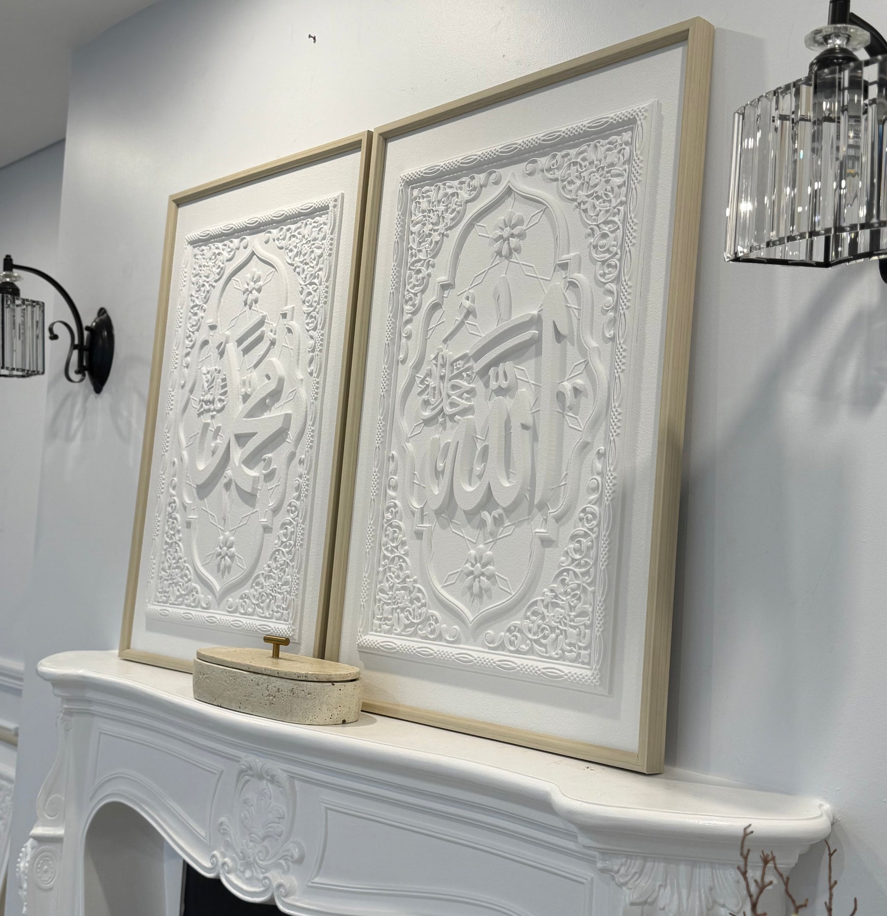 Stone effect Allah & Mohammed set of 2 wall light frames
