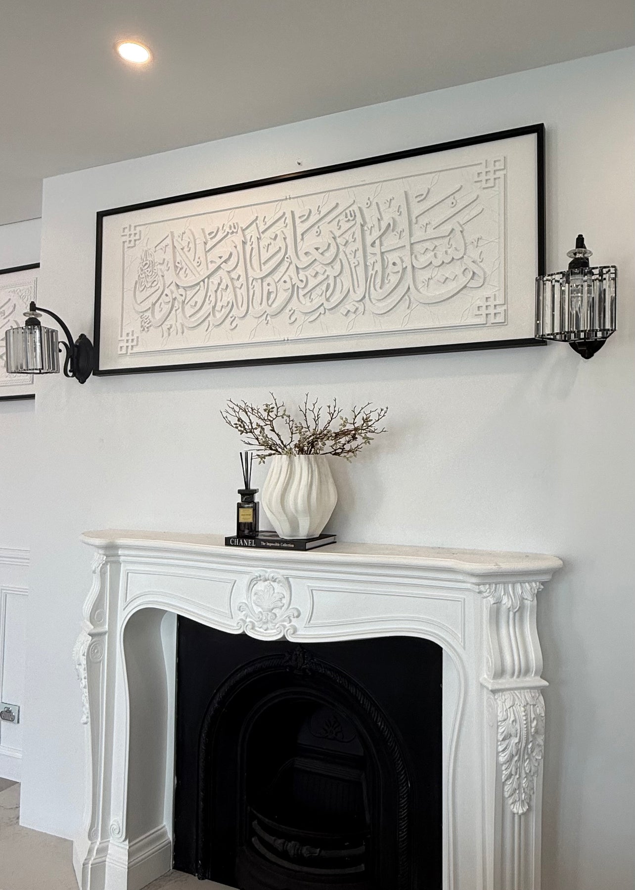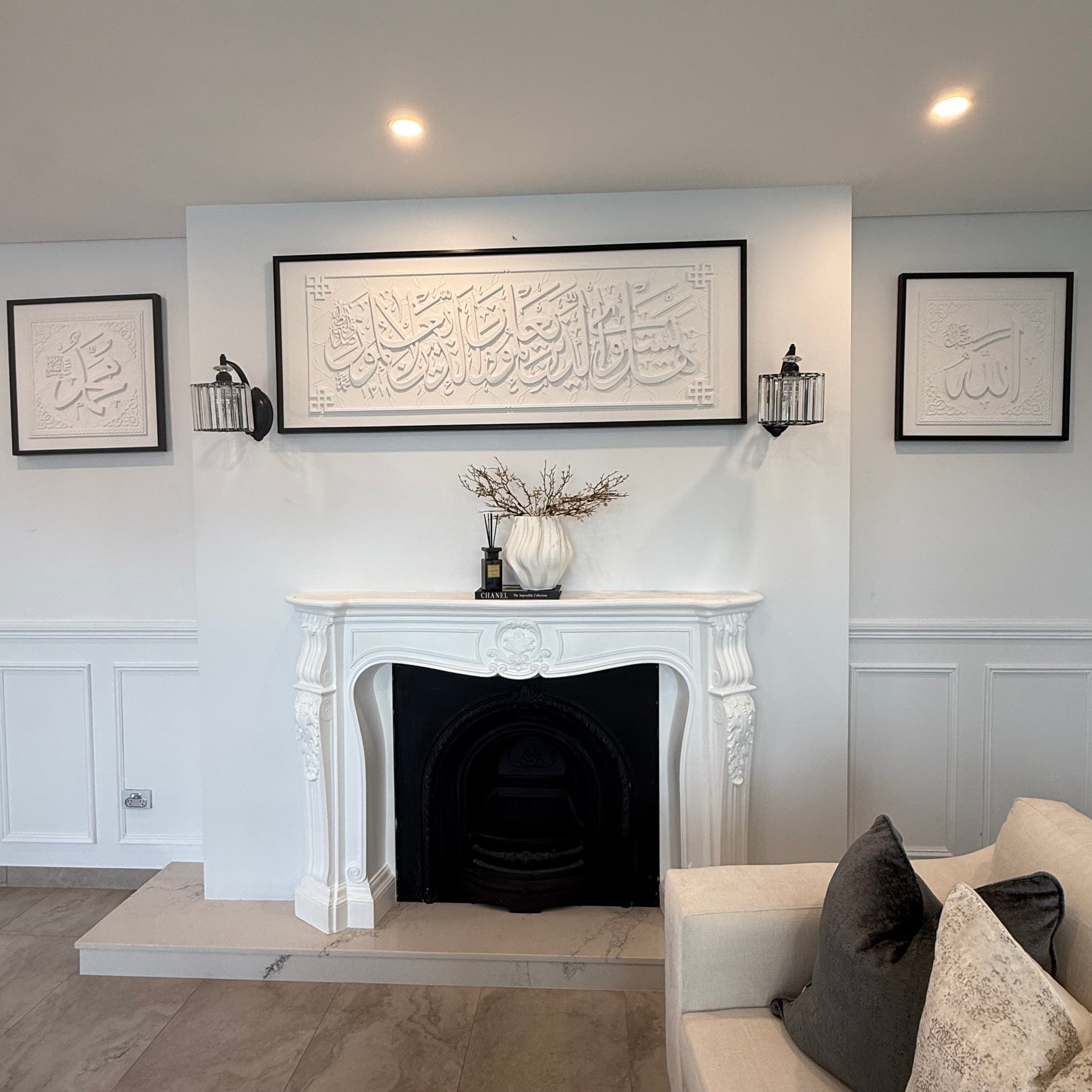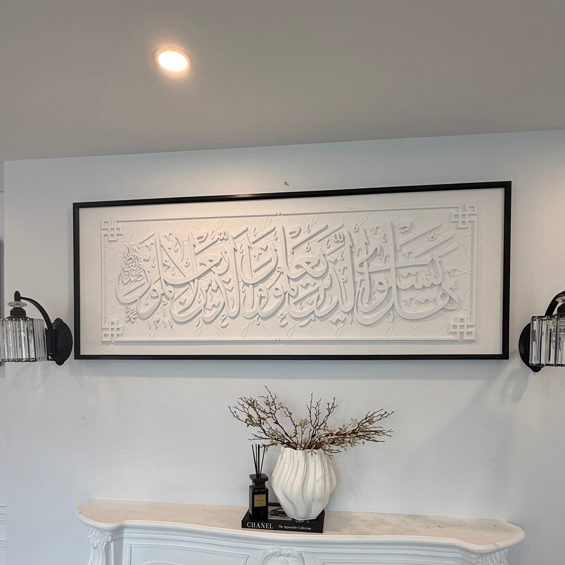 Stone effect calligraphy wall frame black Surah Az-Zumar (39:9) Are those who know equal to those who do not know?