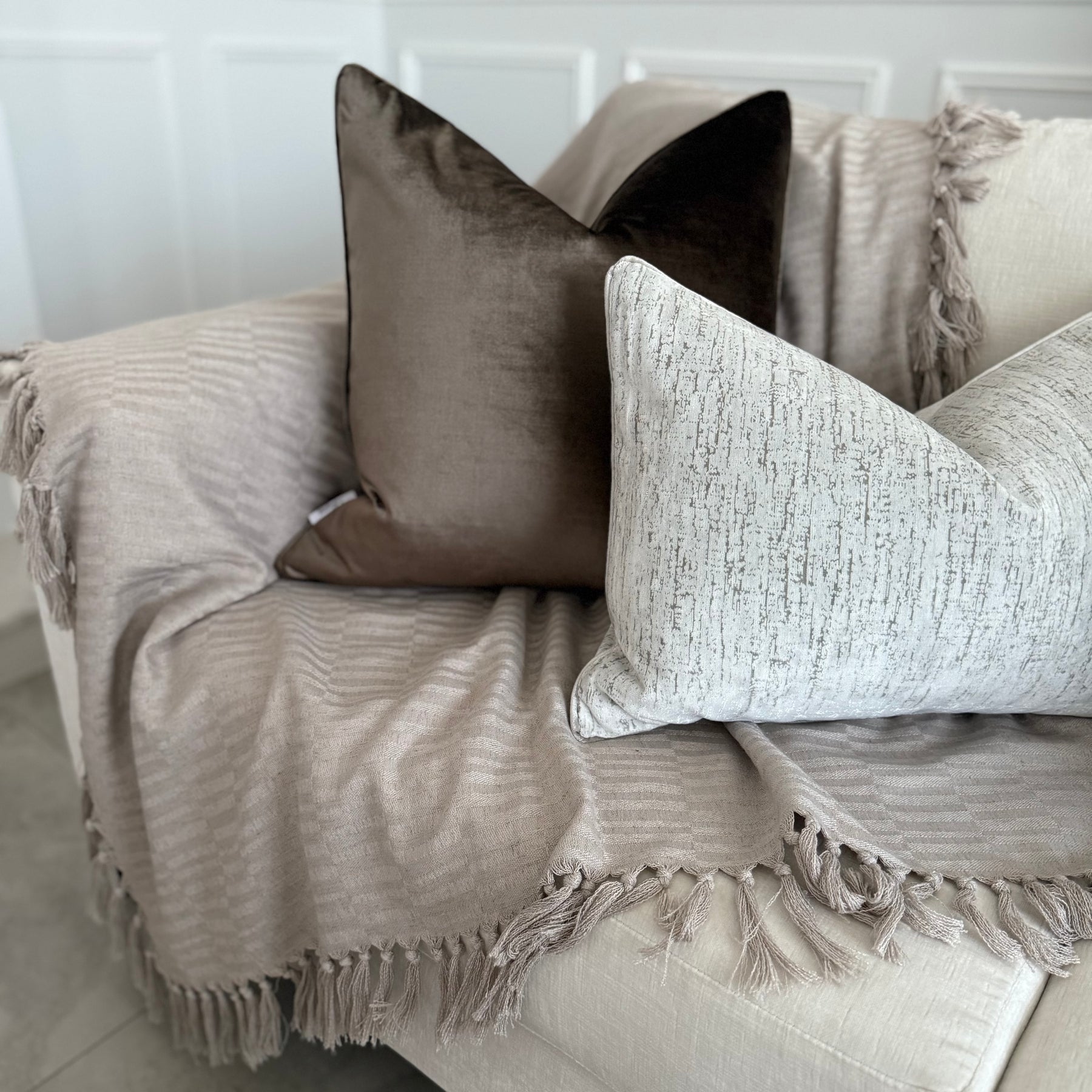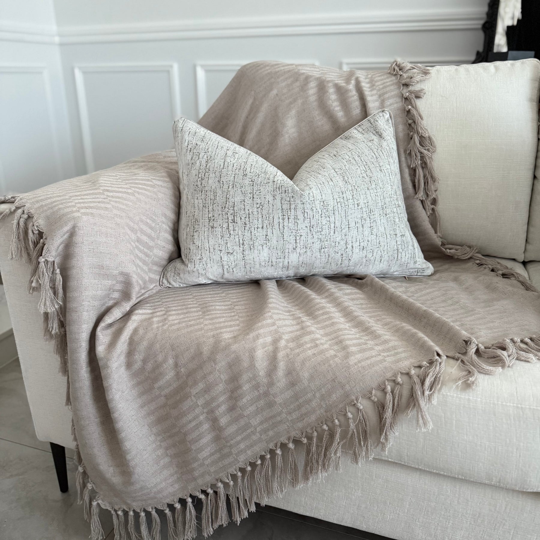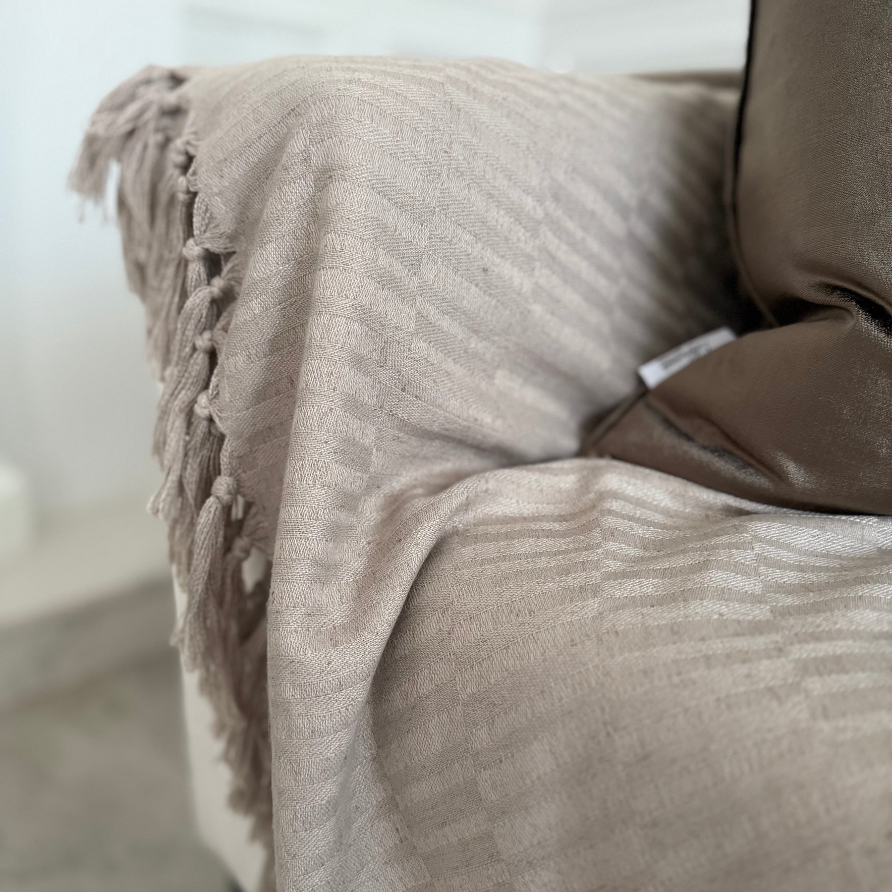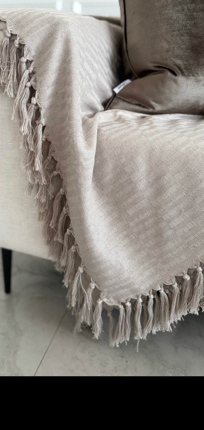Tassels all around the throw .