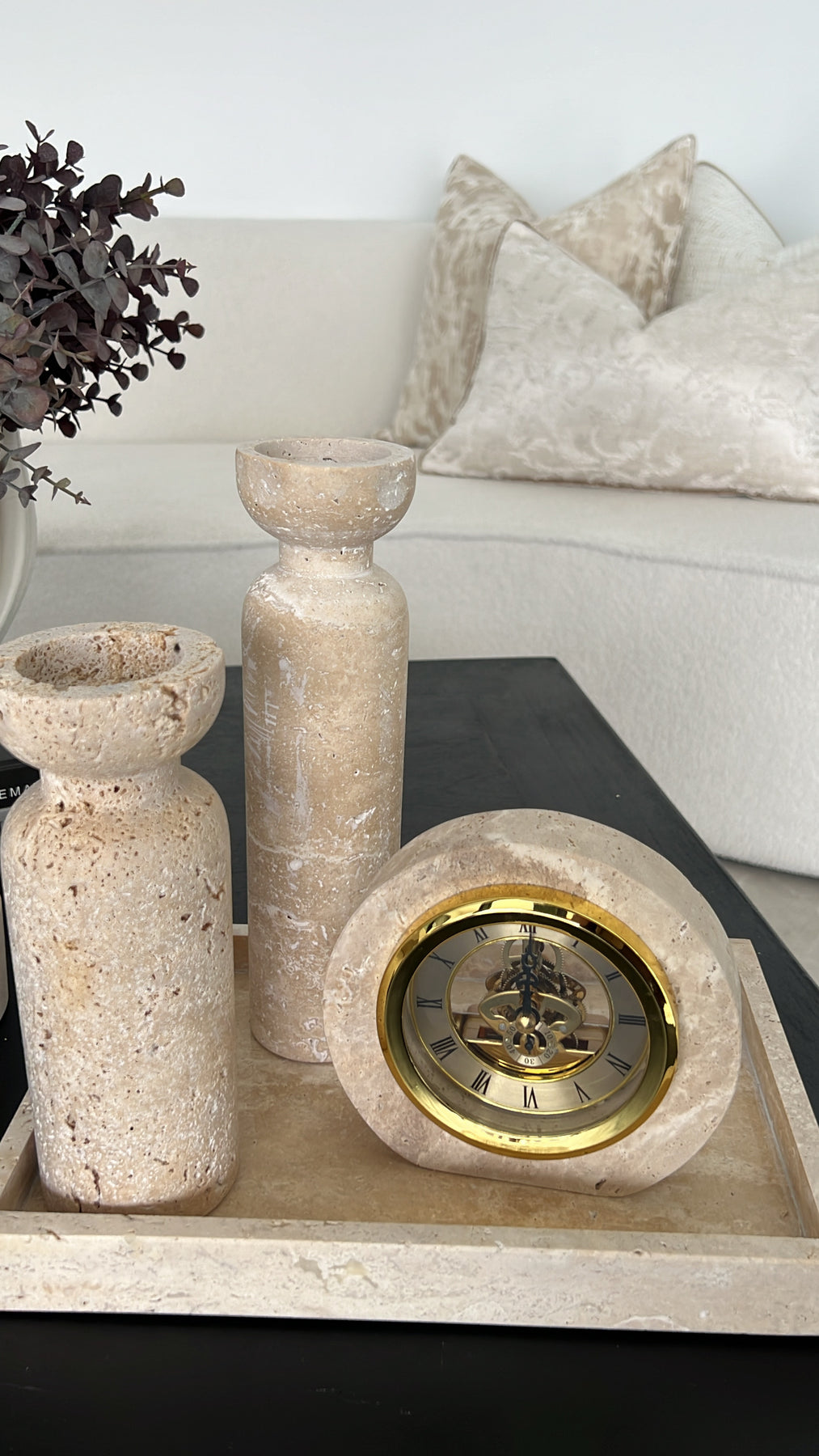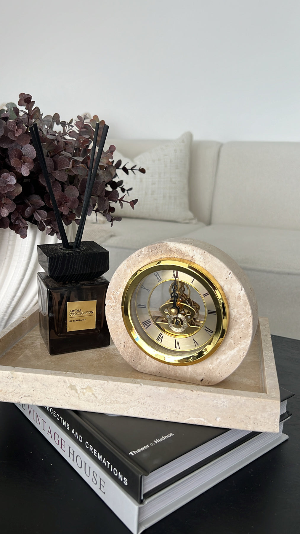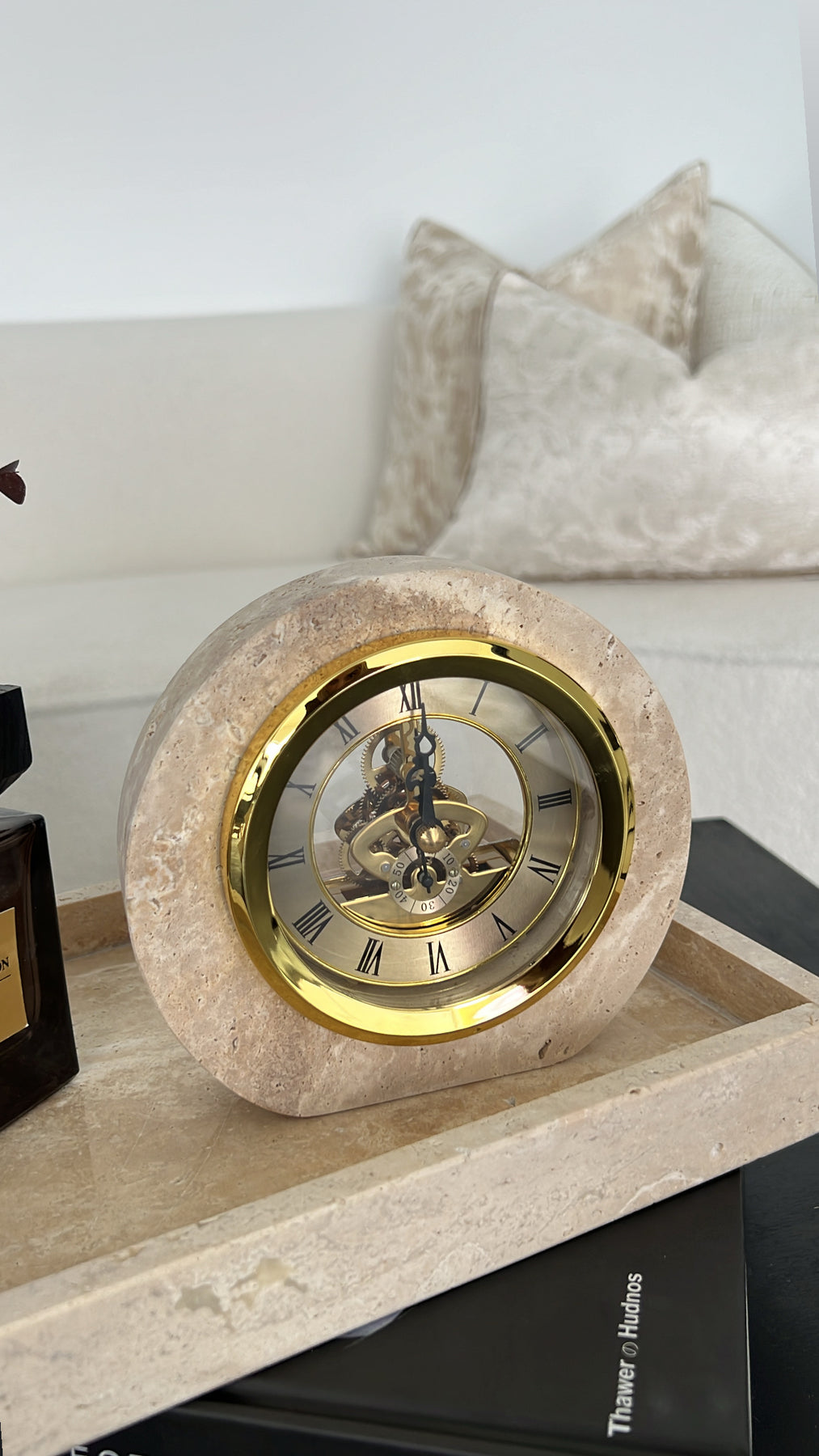 Travertine stone clock