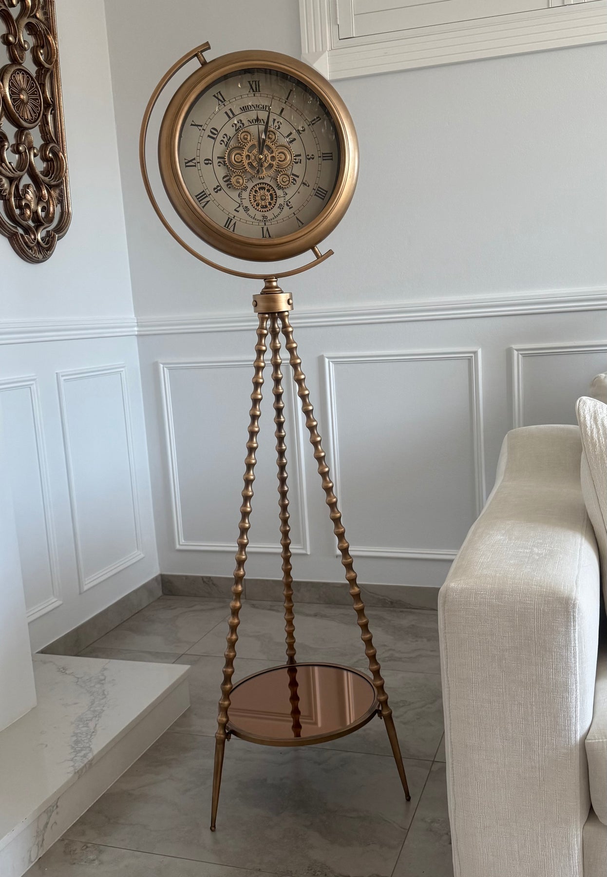Gold tripod floor gear clock 160 cm