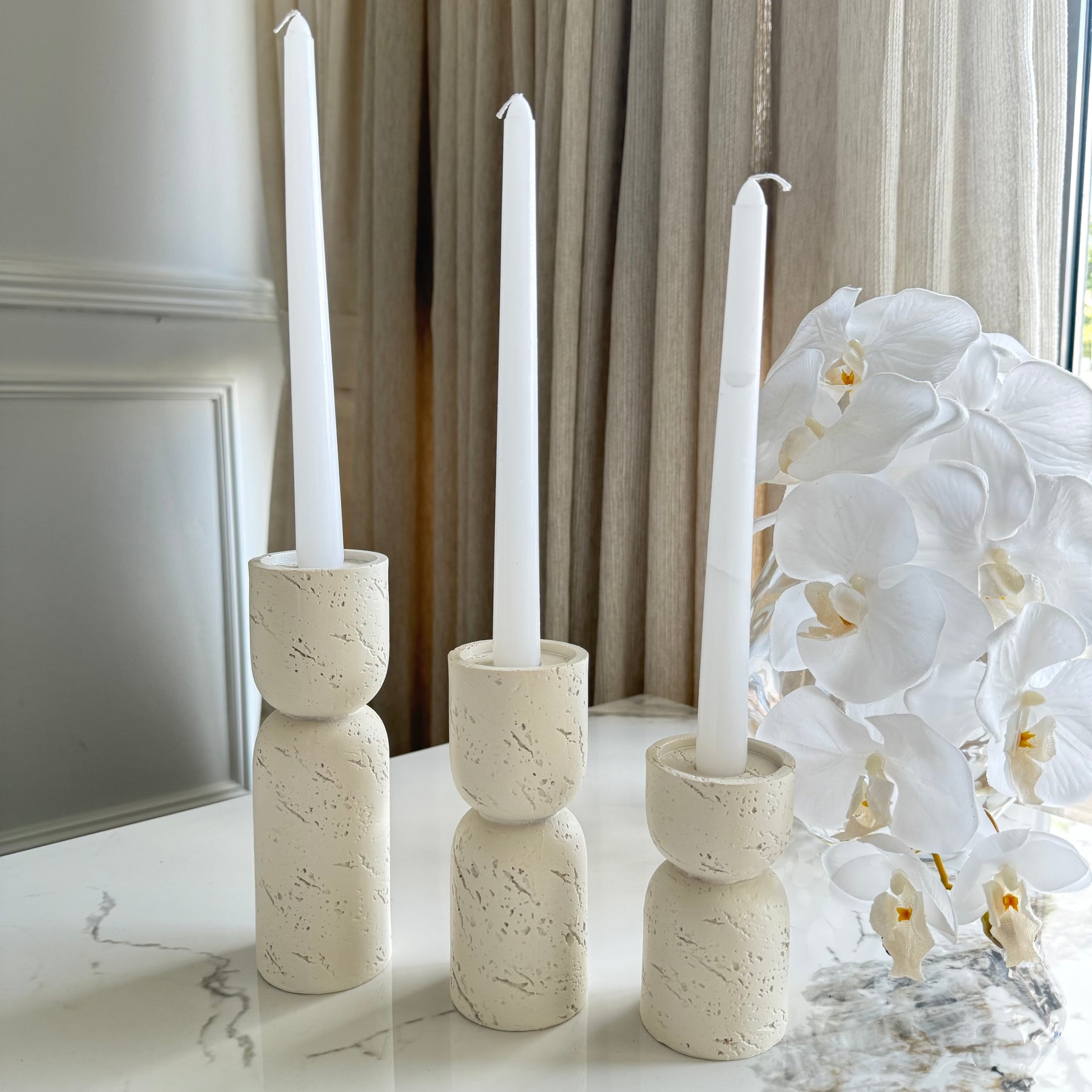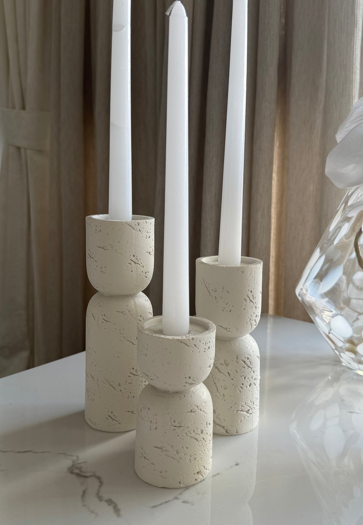 White candle holders set of 3