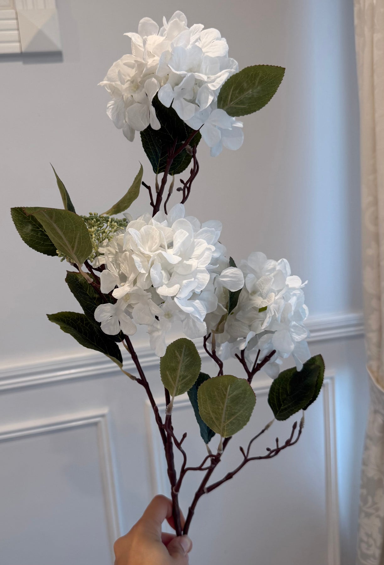 White Hydrangea soft touch artificial stem 85cm